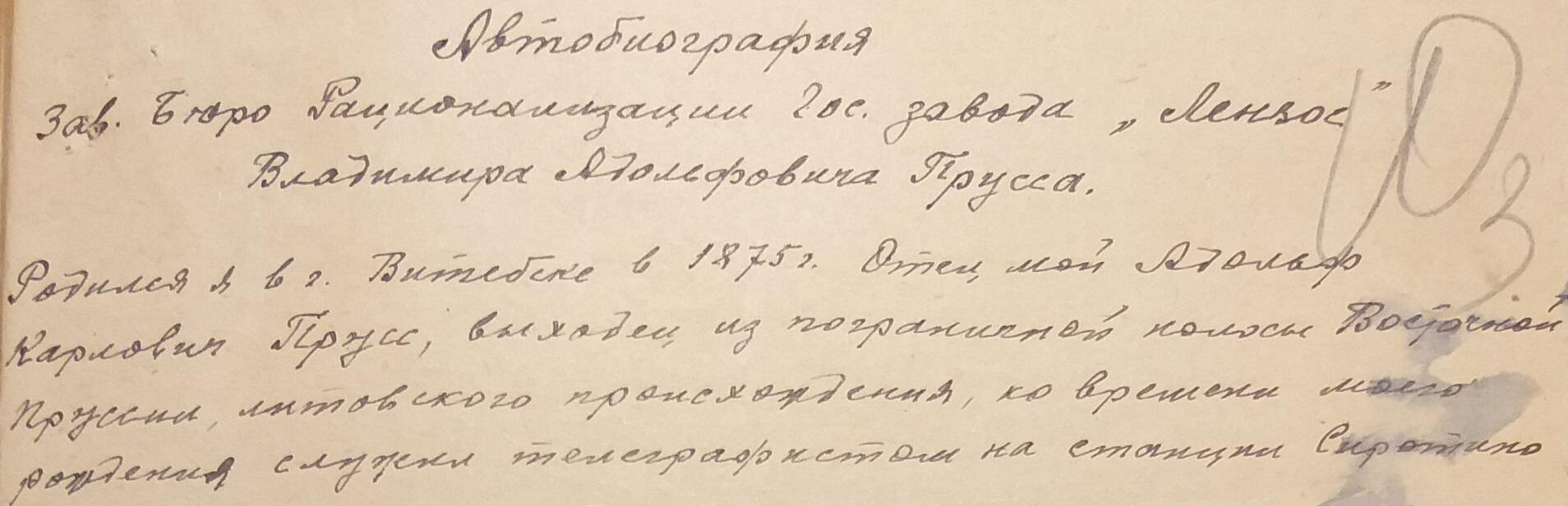 Вольдемар Адольфович Прусс (1875‒1935) — старший сын Адольфа Прусса и Анны Приеде. Родился в Витебске, где его отец работал на железной дороге. С 14 лет давал частные уроки и готовил других детей к экзаменам, чтобы помочь родителям прокормить многочисленных братьев и сестер. В 1893 году закончил классическую гимназию в Витебске и поступил в Военно-медицинскую академию в Санкт-Петербурге. Как он сам признавался в автобиографии, написанной при устройстве на одно из мест работы уже при советской власти, карьеру военного врача он выбрал из-за высокой стипендии в профильной академии, благодаря которой он продолжал помогать родным.