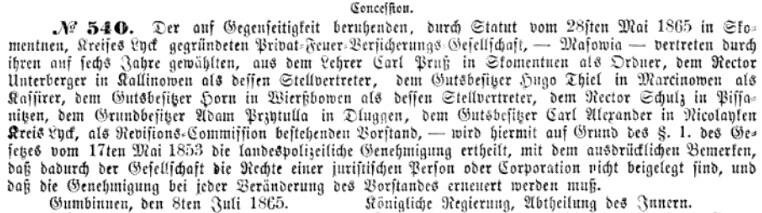 Карл Прусс (1818‒1886) — старейший достоверно известный представитель семьи. Сельский учитель в деревне Скоментнен в Восточной Пруссии (сегодня — Скоментно-Вельке в окрестностях города Элк на северо-востоке Польши). Карл Прусс был лютеранином по вероисповеданию и прусским подданным. Согласно автобиографии его внука Вольдемара Адольфович Прусса, он был этническим литовцем, но совокупность других документальных источников это опровергает и говорит о его происхождении из мазуров — онемеченных поляков-лютеран. Возможно, внук попросту не видел большой разницы между поляками и литовцами, что вполне характерно для Беларуси для конца 19-го века, где он как раз и рос. Судя по всему, Карл в равной мере владел мазурским диалектом польского и немецким языком, но тяготел к немецкой культуре, которая тогда считалась куда более престижной. В 1865 году Карл Прусс стал одним из основателей частного общества страхования от пожаров «Мазовия».
