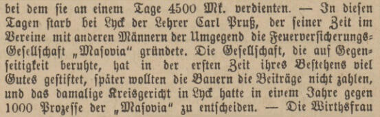 Карл Прусс был женат на Луизе Жилле. Как следует из автобиографии того же внука Вольдемара, она была француженкой по происхождению. Удалось найти запись об её рождении в 1821 году в деревне Доршен прихода Гурнен. Её отец, Луи и Людвиг Жилле, в записи о венчании несколькими годами ранее действительно назван французом и, вероятно, был потомком французских гугенотов, бежавших в Пруссию от религиозных гонений. На момент венчания он работал управляющим имения Доршен, а его невеста и мать Луизы Катарина Кокошковска — также этническая мазурка — старшей горничной.Между 1846 и 1862 годом в браке Карла и Луизы родилось не менее 7 детей: Амалия Эмма, Генрих Адольф, Луиза Эмилия, Рудольф, Карл, Эмиль, Анна и Фридрих. Записи об их рождении делались в метрических книгах лютеранского прихода Писсанитцен, к которому относилась деревня Скоментнен, где супруги жили все это время. Единственный сын Карла Прусса, чья дальнейшая судьба известна из архивных документов — Генрих Адольф, жизни которого посвящен следующий раздел.Карл Прусс умер в марте 1886 года. Об этом известно из короткой заметки, опубликованной в газете Thorner Presse. Большая часть некролога посвящена истории упомянутого выше страхового общества «Мазовия».