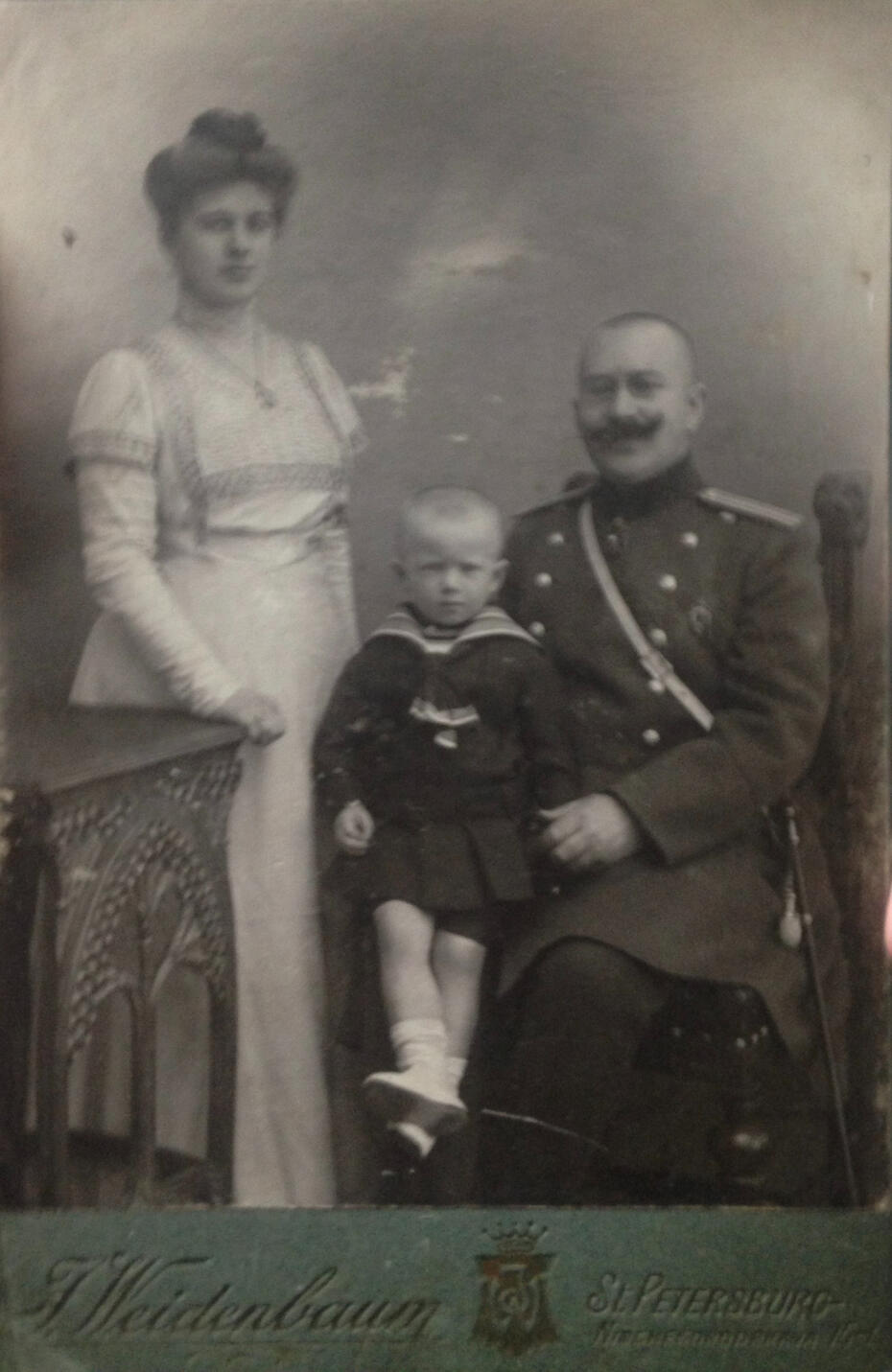 После окончания академии в 1899 году был направлен на службу в польский город Плоцк, в 1903 году смог договориться о переводе в Витебск, чтобы быть ближе к родным, но оттуда его немедленно командировали в Борисов Минской губернии. В 1904 отбыл на Русско-японскую войну в Порт-Артур. В мае 1905 года вернулся с войны в Санкт-Петербург, где женился на Шарлотте Яковлевне фон Морр.Шарлотта фон Морр была дочерью известного педагога, директора Царскосельской гимназии Якова Морра и его жены Юлии Тыниссон. Морр родился в Риге в семье потомка немецких иммигрантов из Восточной Пруссии Георга Готтфрида Морра и латышки Анны Доротеи Спроге, дочери лоцмана Микелиса Спрогиса из рыбацкой деревни на острове Кундзиньсала. Яков Морр закончил учительскую семинарию в Тарту и отправился преподавать в одну из школ на эстонском острове Сааремаа. Несколько лет спустя он вернулся в Тарту и поступил уже в университет. В это время он познакомился с будущей женой Юлией Тыниссон — дочерью эстонского мельника Карла Густава Тыниссона из Паламузе, выбившегося в купцы, и немки Вильгельмины фон Шенеберг из Валмиеры. Шарлотта фон Морр родилась в Тарту, позднее переехала с родителями в Петербург.